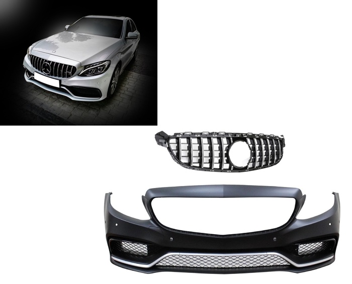 W205 C SERISI IÇIN C63 GÖRÜNÜM ÖN TAMPON PANJUR (SILVER TRIM)-GTR PANJUR ILE